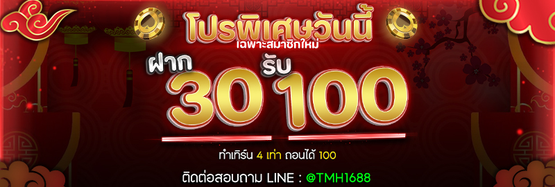 โปรพิเศษสำหรับวันนี้เพียงฝาก 30 ได้ 100 บาท